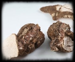크기가 3-5cm 정도의 덩어리이고 겉은 소나무 껍질처럼 거칠며 속이 하얗다고 하는데요. 색깔에 따라 적복령, 백복령으로 나눕니다. 속이 하얀 것은 백복령, 갈색은 적 복령이라고 부르며, 둘 중에서 적 복령이 약효가 더 높다고 합니다. 복령은 예로부터 자양강장, 항암작용 등 우리 몸을 보호하는 최고의 보약 재료로 자주 사용된다고 합니다.
