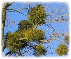 겨우살이는 황금가지라고도 불리고 오리나무, 밤나무, 팽나무, 참나무, 버드나무 같은 낙엽 활엽수의 줄기에 뿌리를 박아 물과 영양분을 흡수하면서 살아가는 기생목으로 밤나무와 버드나무에 기생하는 것은 두통 증상이 있어 잘 사용하지 않으며 참나무와 떡갈나무에서 자란 것을 주로 약으로 사용합니다. 또한 염증 발생 물질을 차단하는 효과가 있고 관절염에도 뛰어나며 올레아 놀산, 비스신, 비스코, 톡신, 옥시다제, 플라보노이드 등 암세포를 죽이는 성분이 다량 함유되어 있어서 암 치료에도 효능이 뛰어나다고 합니다.