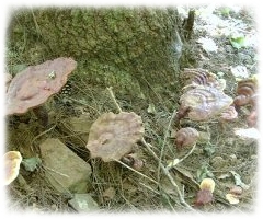 영지버섯은 줄기는 높이가 10cm 정도이고 삿갓은 심장 및 원형 모양입니다. 갓과 자루 표면에 옻칠을 한 것과 같은 광택이 나며, 처음에는 난황 백색이나 황갈색 또는 적갈색으로 변하고 노성 하면 전체가 가죽 모양의 코르크질로서 단단하고 적갈색 또는 자갈색의 윤이 난다고 하는데요. 상하 2층으로 상층은 거의 백색이고 관공(管孔) 부분의 하층은 연주황색이라고 합니다.