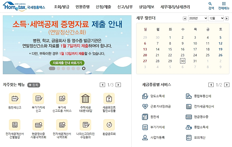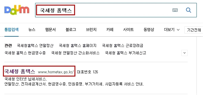 국세청 홈택스를 검색하여 국세청 홈택스 홈페이지에 접속합니다.