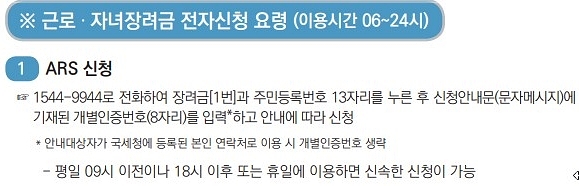 근로 장려금 지급 대상자 확인을 위한 가장 빠른 방법은 ARS로 전화를 걸어 확인하는 것인데요. ARS 전화번호는 1544-9944이며, 연결 후 개인 정보를 입력하시면 본인이 지급 대상자인지 확인할 수 있습니다. 사실 지급 대상자가 되면 우편물이 오기 때문에 따라 알아볼 필요가 없는데요. 하지만, 지급 대상자 확인이 안 되는 경우도 간혹 있기 때문에 서면신청을 하는 방법도 있다고 합니다.