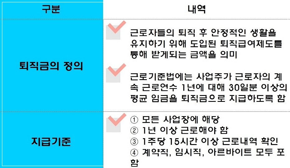 3. 정규직뿐만 아니라 비정규직, 아르바이트생, 파견직 등등 1번 항목에 포함이 된다면 퇴직금 지급받을 수 있습니다.