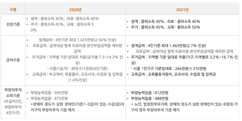 기초생활수급자 자격요건 혜택