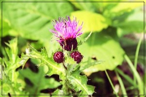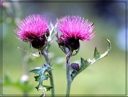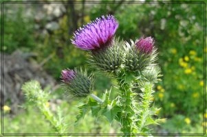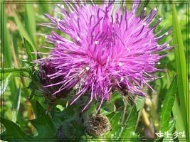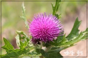 엉겅퀴 란 국화과의 여러해살이 식물이며, 키는 50에서 100cm로 몸 전체에 유별나게 흰 털이 나 있습니다. 엉겅퀴과의 식물은 매우 다양하고 모양이 비슷한 식물들이 많습니다. 오래전부터, 그것은 "피를 엉기게 하는 귀신"이라 하여 엉것귀로 불렸고, 19세기부터는 엉겅퀴라고 불렸습니다. 꽃은 6월부터 8월까지 피고 자주색에서 빨간색입니다.
